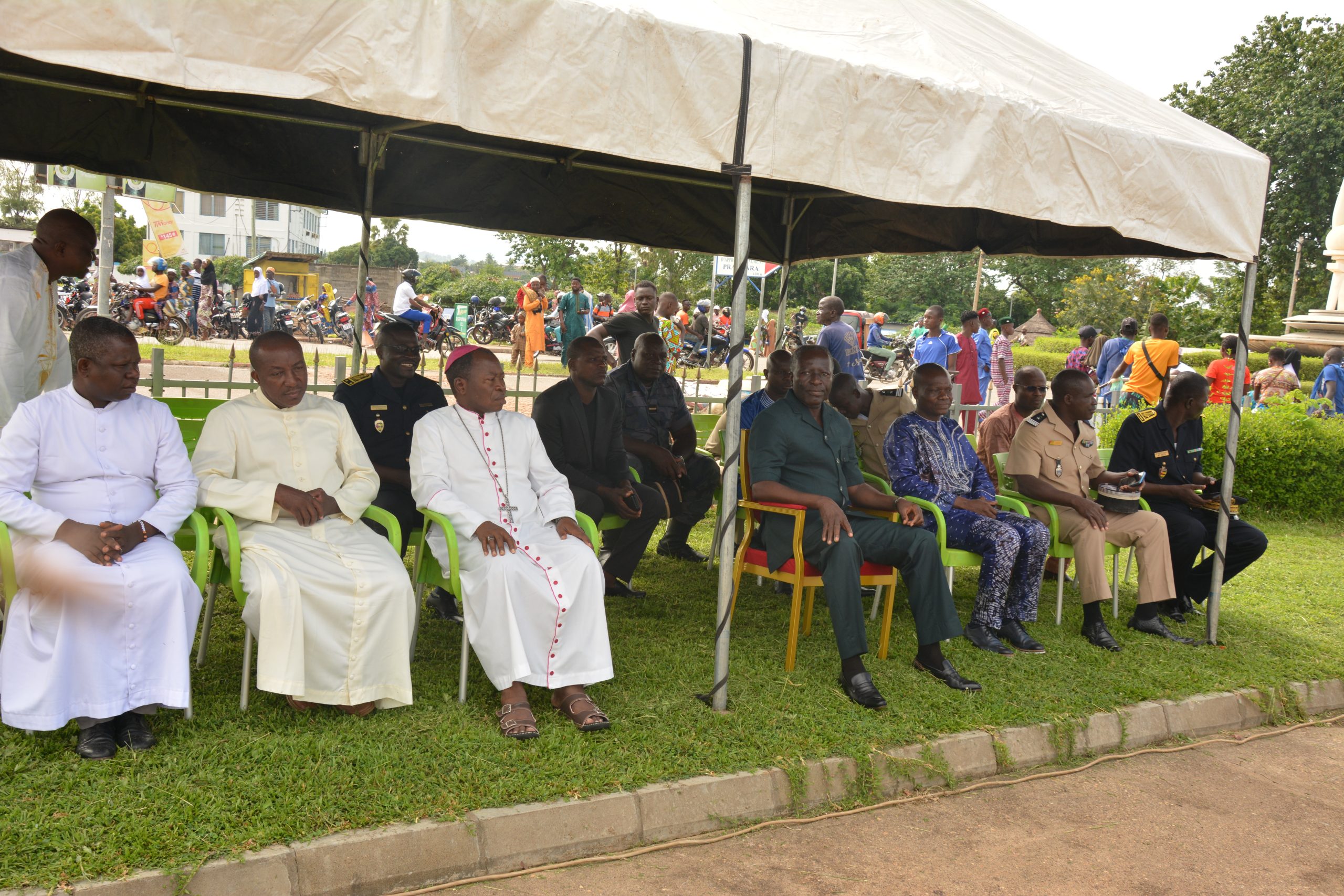 À Sokodé, la grande prière été dite au stade municipal de la ville en présence du préfet de Tchaoudjo Col Monpion Matéindou et de l’évêque de Sokodé Monseigneur Célestin-Marie Gaoua.
