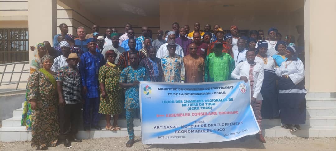 L’ Union des Chambres Régionales de Métiers (UCRM)-Togo a tenu sa 9è assemblée consulaire le jeudi 25 janvier à Sokodé dans la région Centrale. Cette assemblée est placée sous le thème « L’artisanat, moteur du développement économique au Togo ». Elle a permis aux délégués consulaires d’amender et d’adopter le Plan d’action opérationnel (PAO) et le budget prévisionnel de l’année 2024 en vue de faire contribuer davantage le secteur de l’artisanat au développement économique du pays et d’offrir de meilleures conditions de vie aux artisans togolais.