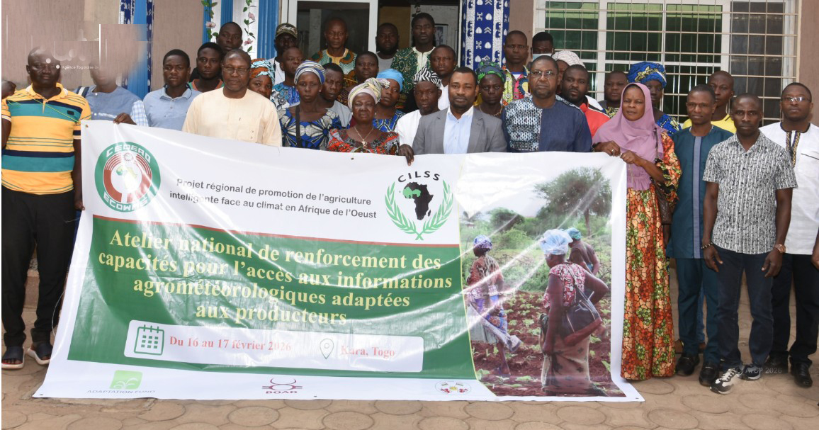 Un atelier national de renforcement des capacités des producteurs agricoles et encadreurs des régions des Savanes et de la Kara s’est tenu les 16 et 17 février 2026 à Kara. La rencontre organisée par l’Agence régionale pour l’agriculture et l’alimentation/Agriculture intelligente face au climat (ARAA/AIC) de la CEDEAO, a permis aux participants de disposer, en temps réel, des informations agrométéorologiques adaptées aux besoins des producteurs.