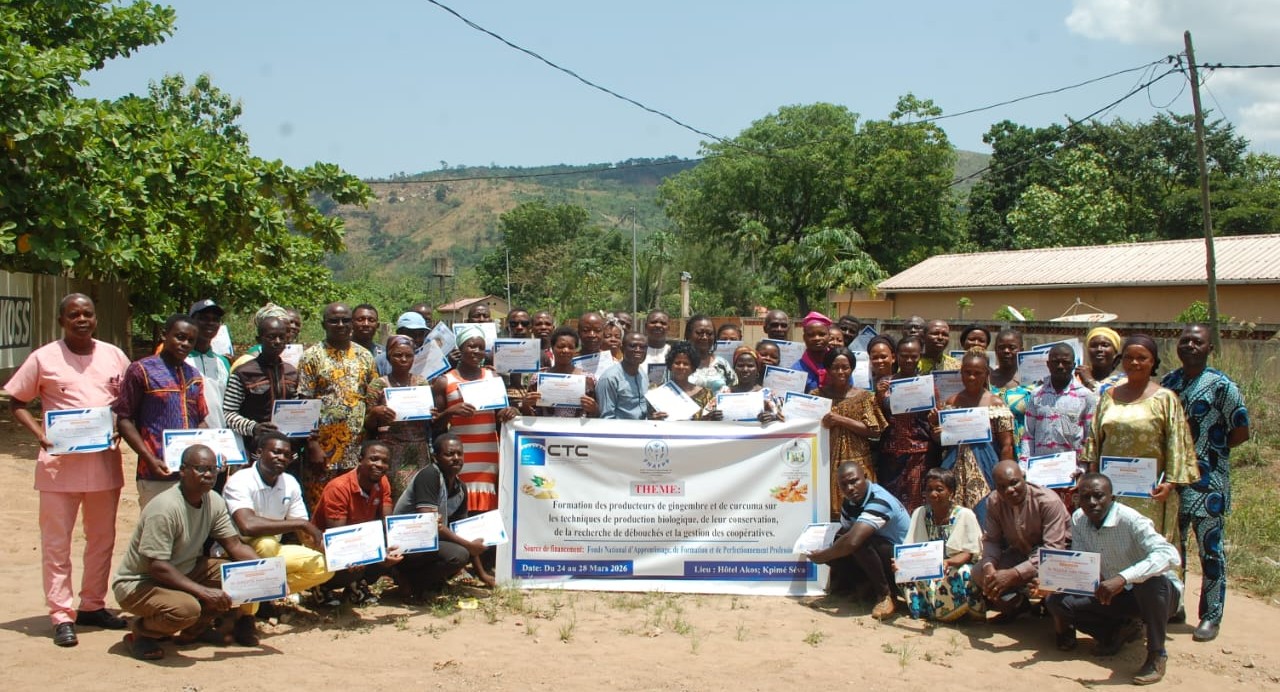 Les participants ont été formés sur les itinéraires techniques de production du gingembre et du curcuma, les pratiques de production biologique, les méthodes de conservation ainsi que les stratégies de commercialisation. Des modules sur la gestion des micro-entreprises agricoles et l’accès au financement ont également été abordés. Les producteurs ont été encouragés à s’organiser en coopératives afin d’améliorer la production et l’écoulement des produits.